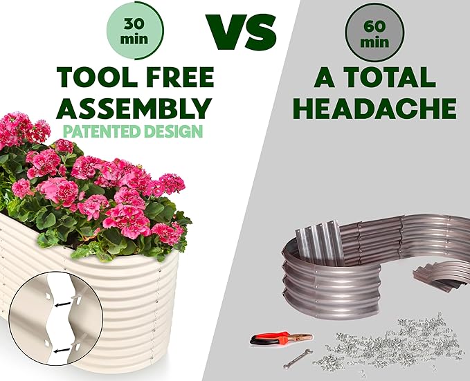- EFFORTLESS ASSEMBLY, LIKE NO OTHER! Begin your planting journey by choosing our innovative patented design, featuring the perfect combination of easy assembly and durability. Thanks to our unique tool-free design, assembly is a breeze and can be completed in just 30 minutes! Get started on your garden right away and enjoy fresh, healthy produce in no time.