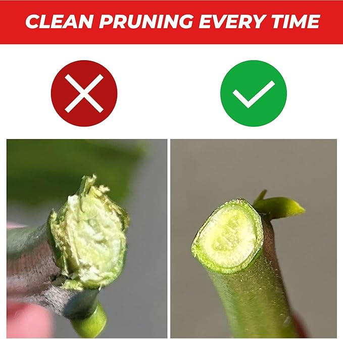 - Ultra-Sharp Garden Shears: Blades that Stay Sharp and Strong. Crafted from high carbon SK-5 steel and enhanced with Ultra-fine Polishing Technology, these shears ensure clean and precise cuts for flower gardens, roses, and plants. With a smart sap groove design, they effortlessly prevent sticking by channeling off sap, providing a comfortable and enjoyable pruning experience.