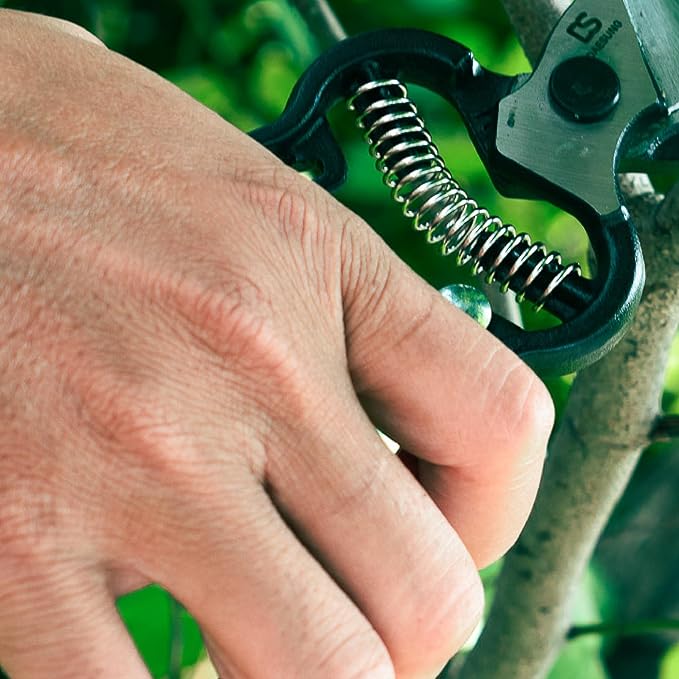- Additional Spring: The springs of the 8-inch pruners have an anti-rust coating. Safe Lock: Installed with a safe locking system, DAESUNG bypass shears can be locked when not in use to protect you from any unforeseen incidents.