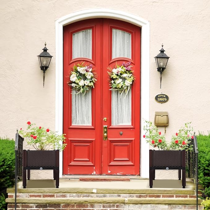 - ✅PREMIUM QUALITY: Made from reinforced PP with rattan pattern, the planter boxes are lightweight, stylish yet sturdy for long time use. Gift gardening gloves and floor protective caps help easier planting & your floor
