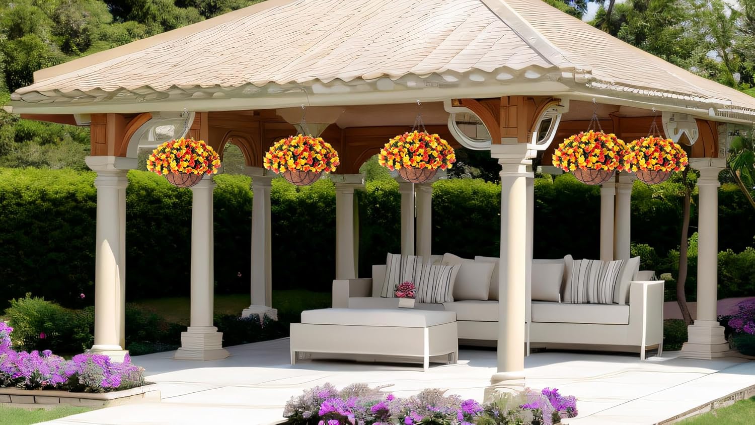 - Lifelike Artificial Greenery: This artificial flowers in hanging basket boasts a realistic appearance, making it an ideal choice for enhancing your home, garden, yard, patio, balcony - both indoors and outdoors.