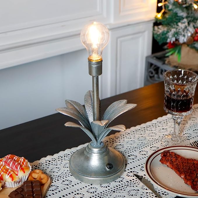 - 【3D FLOWER BULB BATTERY LAMP】-The life-size vintage decorative lamp battery powered, antique silver 3D metal flower design paired with an LED bulb emits a warm, amber glow, creates an aura of old world charm - Adds a gorgeous touch to any space with the graceful marriage of beauty & practicality - Eye-catching prop for tables, bars, patios, porches; fabulous indoor & outdoor decor day & night.