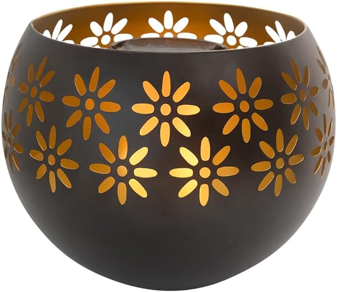 - 8” Metal Decorative Bowl - The Solar Fire Bowl features a stylish metal design, adding a touch of sophistication to your outdoor garden decor while serving as a functional solar table lamp, lantern and garden decor.