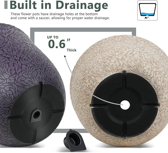 • Premium Material: Made of high-quality plastic, these planter pots are lightweight but durable, with a sturdy structure that can hold up to your plants' growth
