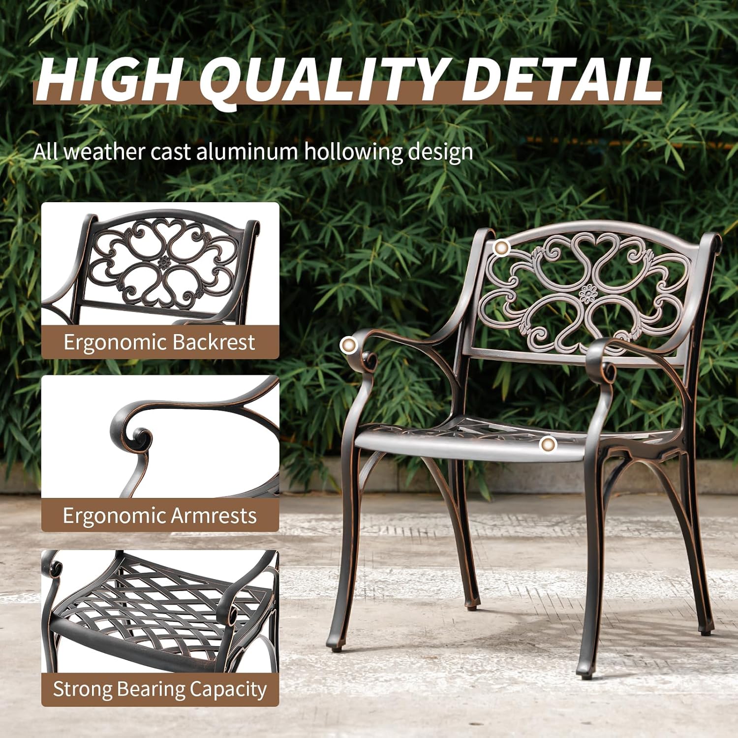 - Rust-resistant metal: Bistro chairs set is made of cast aluminum with rust-proof, weather-resistant, sturdy, and can be used for a long time. Our patio bistro chair set is durable but lightweight. Max weight capacity of a single table is 250lbs and Max weight capacity of a single chair is 300 lbs.