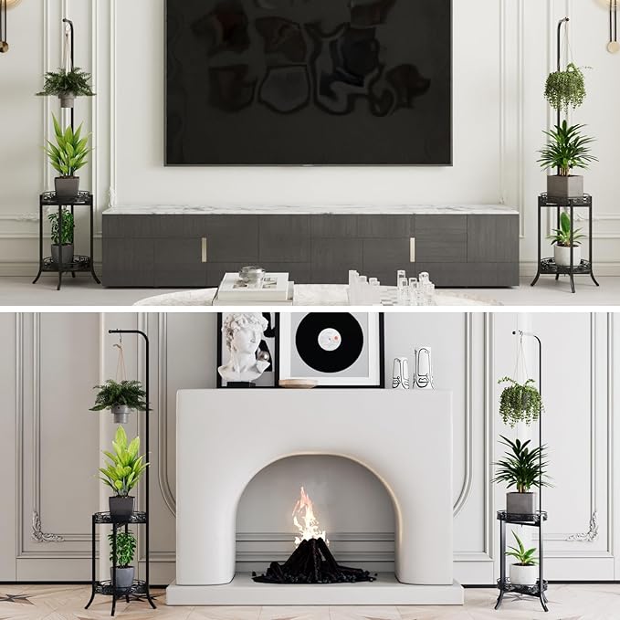• Space-Saving Design: This iron hanging basket plant stand is thoughtfully designed to save space, making it suitable for small areas like living rooms, bedrooms, hallways, and corners