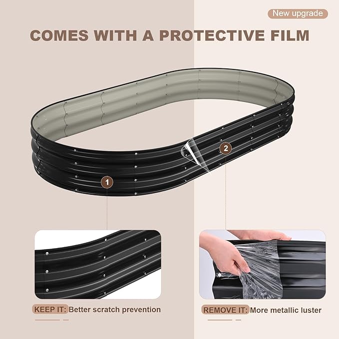 - DURABLE DESIGN: This galvanized raised garden bed, with a Zinc-Aluminum coating, is designed to enhance longevity and withstand various environmental conditions. The coating helps prevent oxidation and increases surface hardness. Its thickened design and oval shape ensure even pressure distribution, making it highly resilient against external forces. Reusable for years