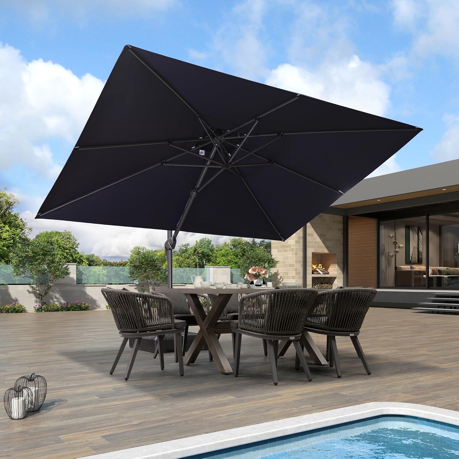 PURPLE LEAF 9' X 12' Patio Umbrella with Base Outdoor Rectangle Umbrella Large Cantilever Umbrella Heavy Duty Outdoor Market Umbrella for Garden Deck Backyard Pool Navy