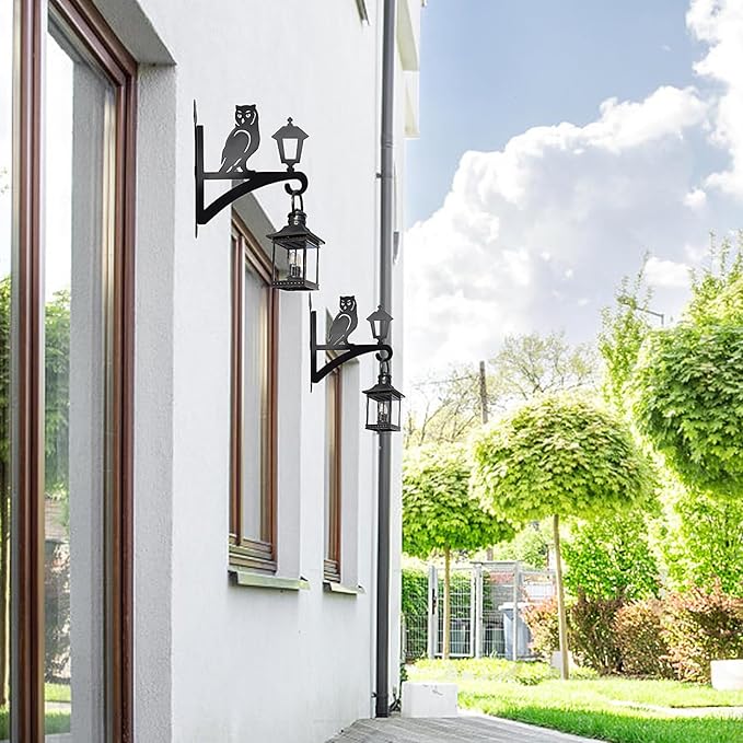 Iron Plant Hangers Outdoor, Metal Plant Hooks for Hanging Baskets, Bird Feeders, Lanterns, Flower Pots, Wall Mount Hanging Plant Holder (Owl & Street Light)