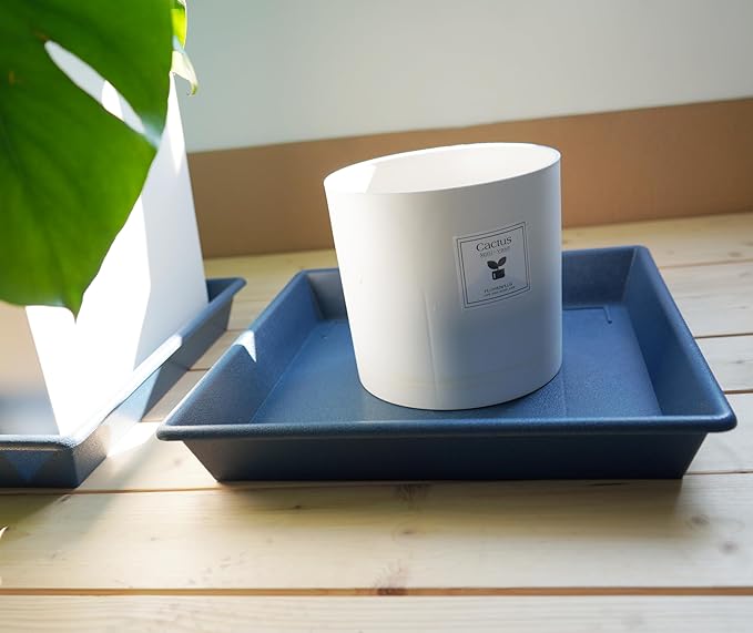 • Square Plant saucer 8 inch for indoors, This package inchudes 5 pack 8 inch blue plastic plant saucers, Each plant saucer 8.5 inches at the top and 7.0 inches at the bottom, It can be used indoors and outdoors square plant trays