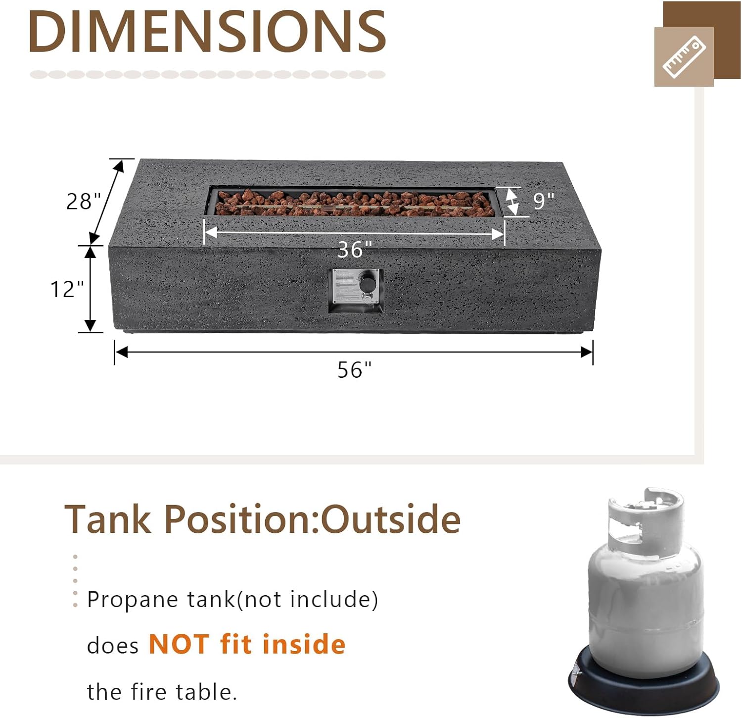 COSIEST 56-inch x 28-inch Outdoor Propane Fire Pit Coffee Table w Concrete Rectangle Base, 50,000 BTU, Free Lava Rocks and RainCover, Fits 20lb Tank Outside, Gray
