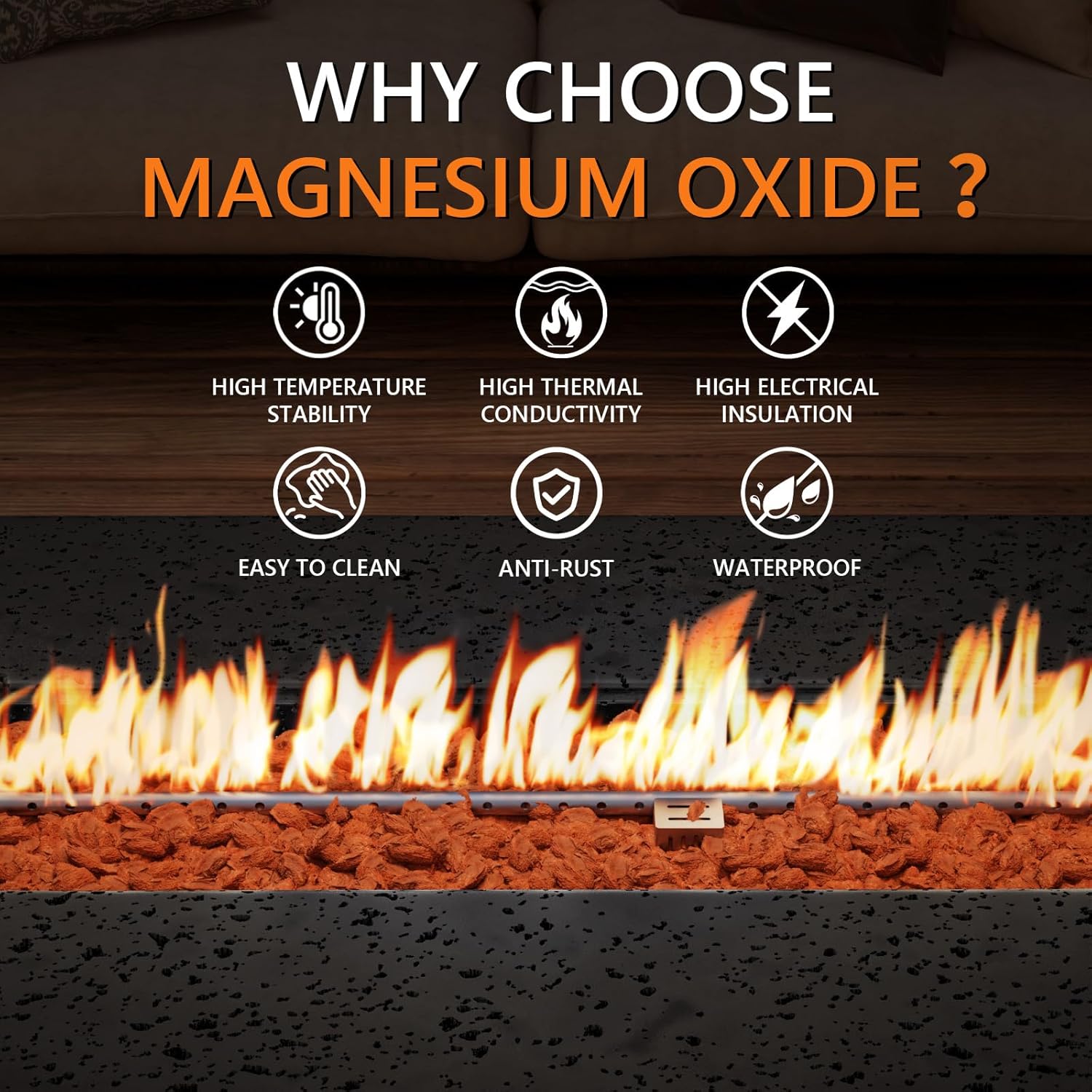 - š„ćMesmerizing Flamesć: The ultramodern terrazzo white finish is something you'd expect to see in a chic SOHO loft space or art opening with it's simple, unobtrusive style. All built to last from sturdy, fire retardant magnesium oxide with a stainless steel burner bowl, low maintenance and resistant to heat. Lights with the push of a button and flame intensity is controlled by the turn of a knob.