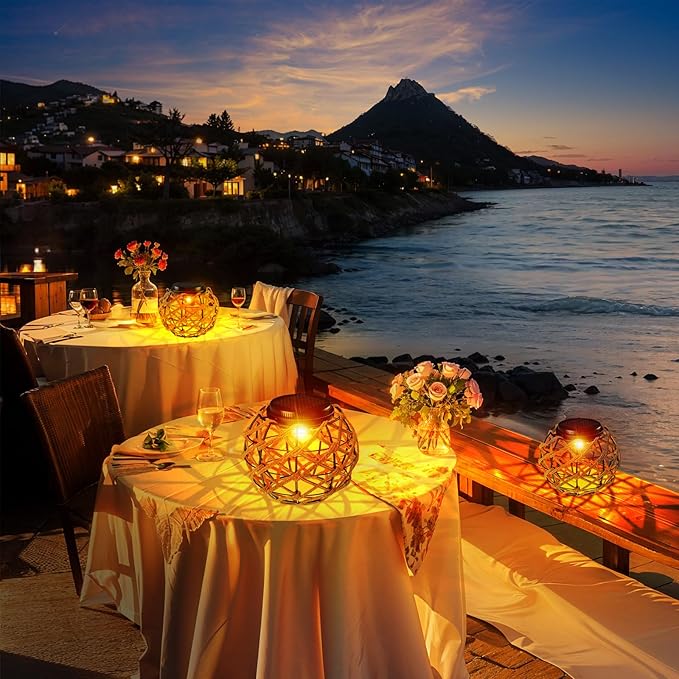 - Unique Retro Rattan Design: Boho Solar garden lantern shines warm light and white light, retro and minimalist style, which is a beautiful decoration for all kinds of places, such as courtyard, patio, table, deck, step, or hang it on a tree, path, wall. If you want to hang it indoors, it will also bring warm atmosphere to your room. The hanging solar light are also a beautiful and practical gifts for family and friends.