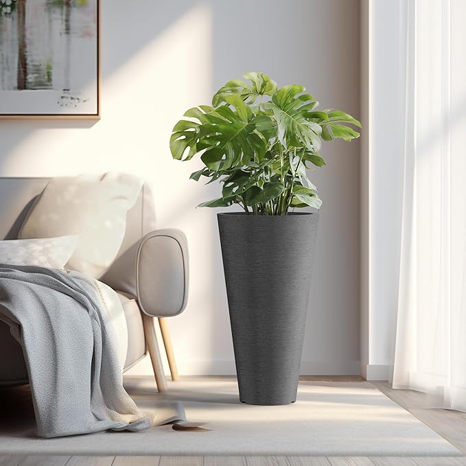 - Premium Tall Planters - Meticulously crafted with durable construction and superior workmanship, our planters are made from high-quality plastic, ensuring longevity, weather-resistance, and color retention. Whether utilized indoors or outdoors, these tall round planters are suitable for all seasons.