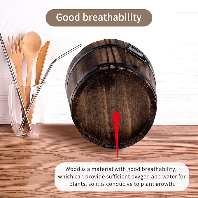 - 【Wide Application】Our wooden barrel planters set is a good choice for indoor and outdoor decor. Nice for home,decor,office, wedding, balcony,patio, garden, bedroom,vacation, other artificial plants and flowers.You can feel the quiet rural comfort when garden or front yard planting.