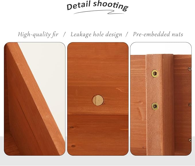 • 【STABLE AND DURABLE】: This raised garden bed is made of fir wood, which is stable in nature and is an excellent material for outdoor gardening furniture with a long service life