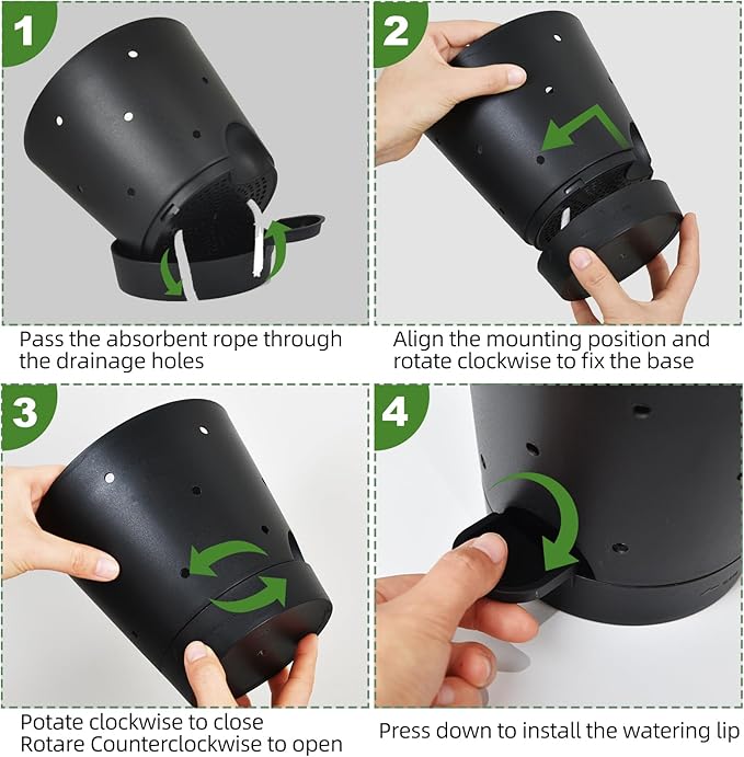 - Easy to Install: Plastic plant pot for orchid comes with a detachable tray that can be installed clockwise and removed counterclockwise. Each self watering pots is equipped with a watering lip to allow watering through the lip, and providing a clear view of the water level.