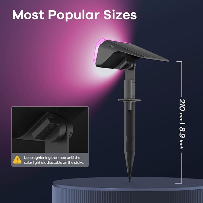 - Easy Installation & Adjustable Design: Securely tighten the knob to adjust the solar lights on the stake for the perfect angle. The quick and hassle-free setup ensures optimal solar charging and lighting coverage