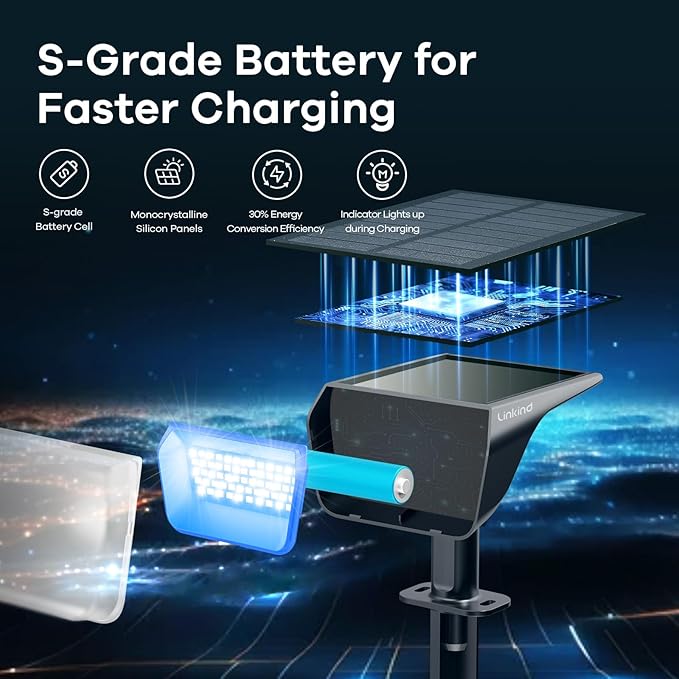 - Long-Lasting Battery & Solar Charging: A powerful 1,500mAh lithium polymer battery provides extended illumination. Solar lights are outdoor waterproof with up to 30% energy conversion efficiency and charge efficiently in sunlight. For best results, charge for 48 hours before first use