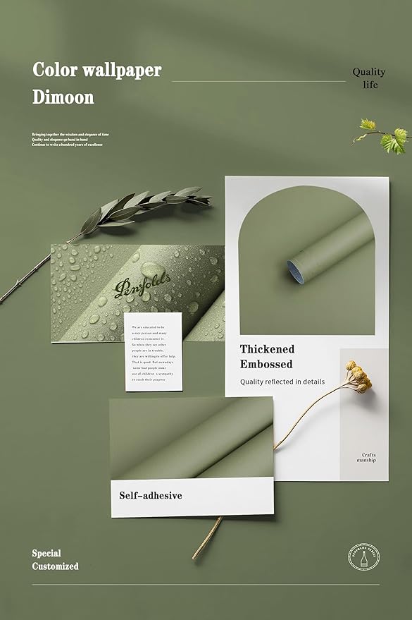 Dimoon 236''x17.7'' Green Peel and Stick Wallpaper Contact Paper Modern Self Adhesive Wall Paper Removable Renter Friendly Textured Solid Color Shelf Cabinet Vinyl Roll (236''x17.7'',Olive Green)