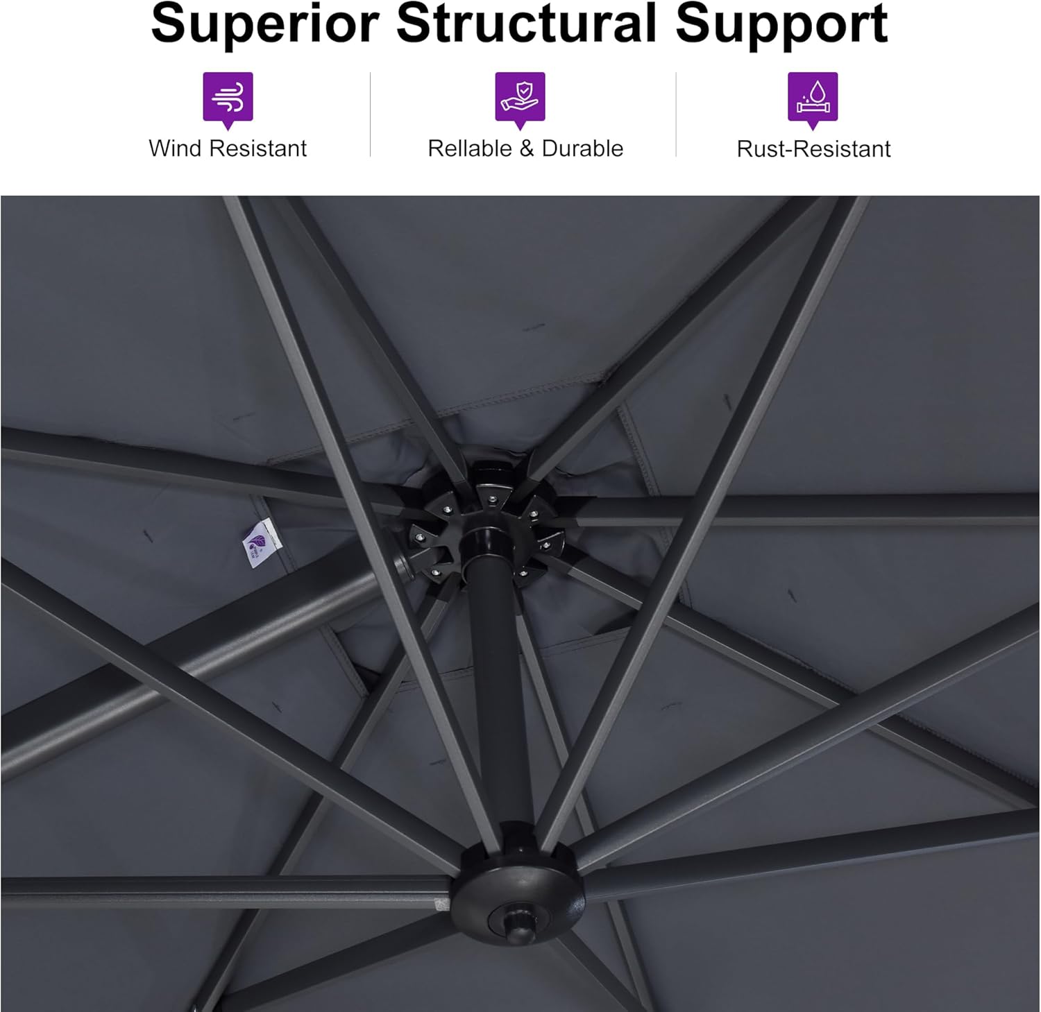 PURPLE LEAF 10 Feet Patio Umbrella Outdoor Cantilever Round Umbrella Aluminum Offset Umbrella with 360-degree Rotation for Garden Deck Pool Patio Light Grey