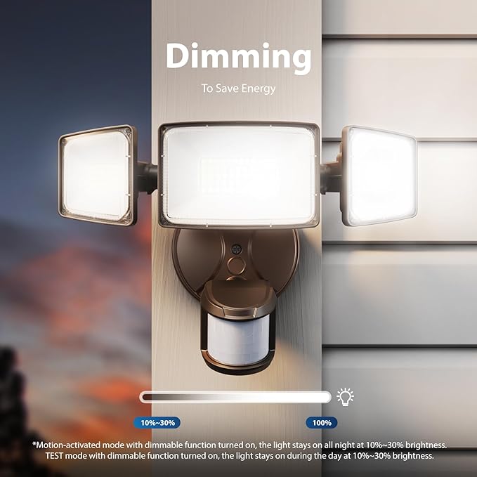 - About motion-activated mode: Detection angle 180°, timer 10 seconds to 10 minutes, customizable motion zone 20~72 feet, and dimmable (Note: the light will stay on all night if you adjust the brightness to 10%~30%)