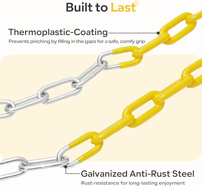 - 【Durable Chains】Our 66-inch chains are zinc-plated to resist rust and feature a 30-inch plastic coating to prevent finger pinches during outdoor play. This provides lasting durability for outdoor conditions
