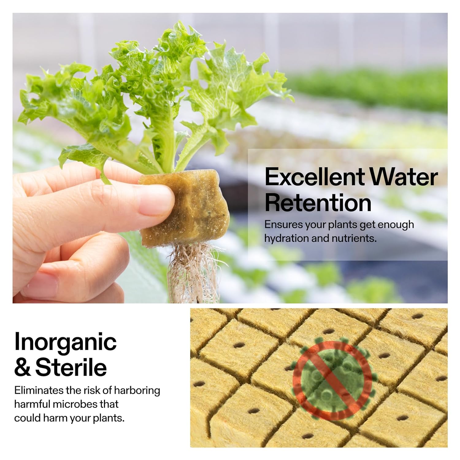- Easy to Use & Observe: These light and fluffy rockwool cubes are easy to cut to any size; Each cube has a hole for your seeds or cuttings, and you can transfer the cubes to any medium when the roots develop; It is also easier to observe the growth on one sheet