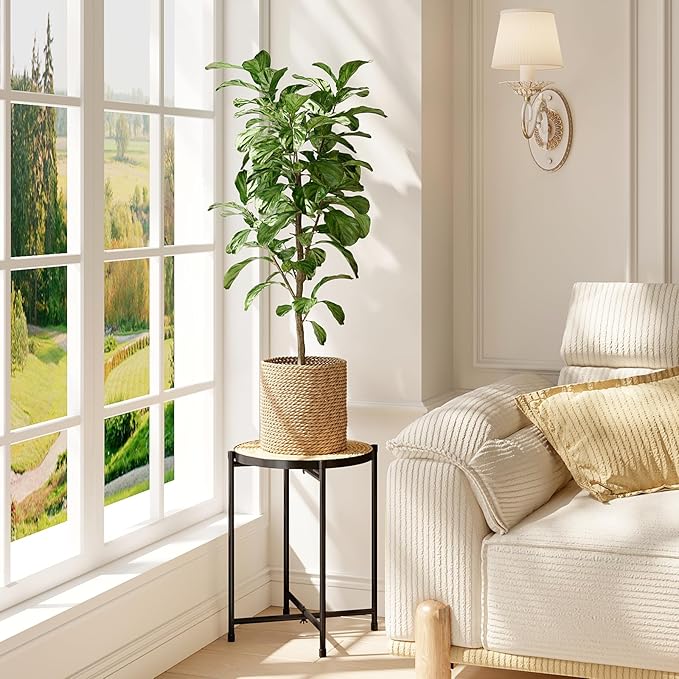 - Natural Material: This plant holder is made of iron, and the surface of the plant tray is made of natural straw plait. The boho plant stool will add vitality to your living space and bringing you a feeling of natural comfort.