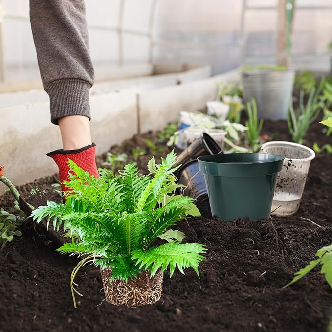 50 Pack 6 Inch Nursery Pots, Planting Grow Plastic Flower Pots, Thick Planters with Drainage Holes for Outdoor/Indoor Plants Succulent Herb (Green)