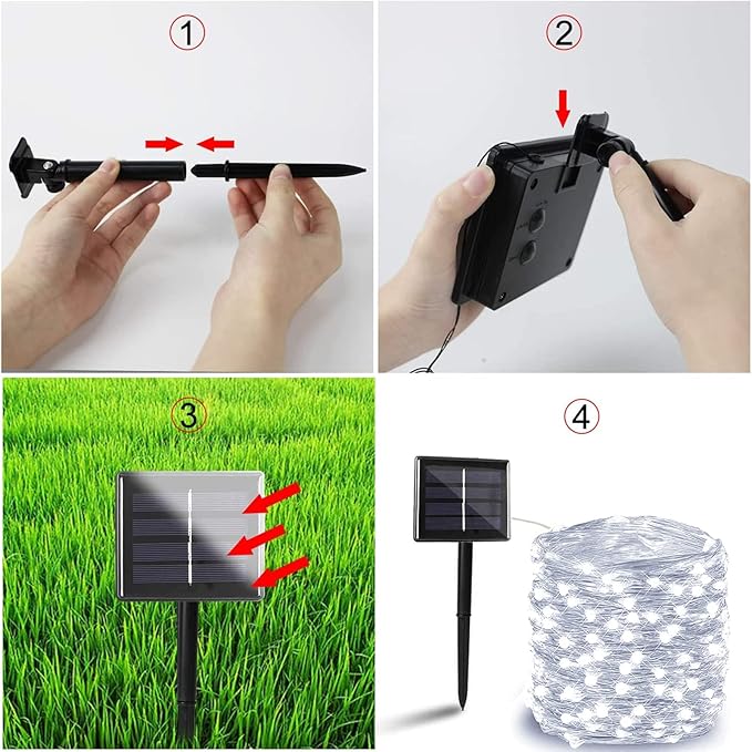 - 【New Upgraded Solar String Lights Outdoor】: Super Bright 2-Pack Each 72ft 200 LEDs Cool White Christmas String Lights with Upgraded LED Bulbs, Higher Conversion with Larger Size Solar Panel, Larger Capacity Battery(1800mAh ), IP65 Waterproof Performance.