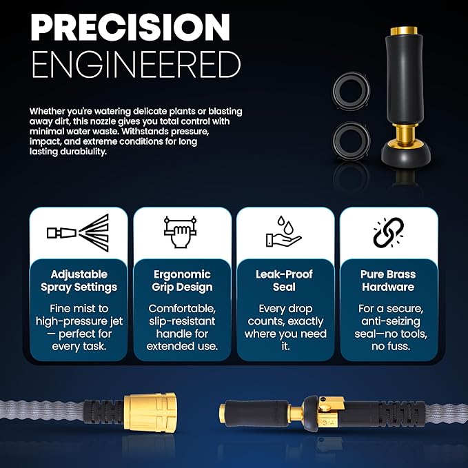 - [Feather-Light, Super Strong] Redefining watering with its incredibly lightweight design, experience unmatched watering efficiency with our Titan garden hose. When paired with our precision-engineered nozzle, this hose delivers exceptional pressure for everyday watering tasks while saving you water. Ideal for garden maintenance, vehicle cleaning, RV, marine use and more, for a powerful and consistent water flow.
