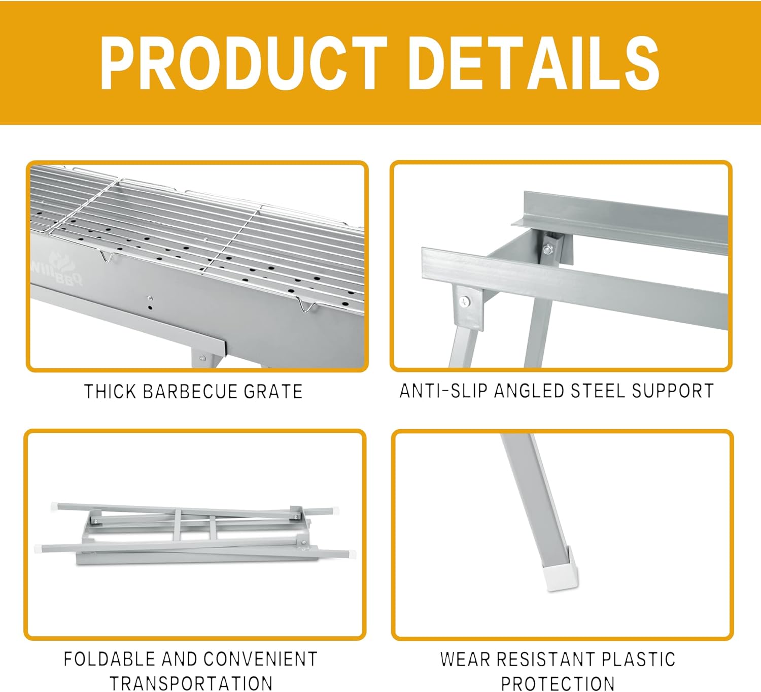 Charcoal Grills Commercial Quality Portable Multiple Size Hibachi BBQ Lamb Skewer Folded Camping Barbecue Grill(39.4x7.1x5.1 inch With Accessories)