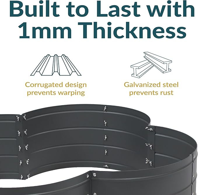 - DURABLE CONSTRUCTION: This outdoor raised garden bed is made from galvanized steel to resist rust and weathering over time.