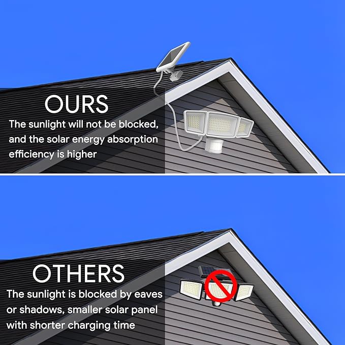- 【All-Weather Resistant】 Our solar lights is made of high-strength ABS+PC material, IP65 Waterproof, featuring impact resistance and heat and cold resistance, and features a protective screen covering the LEDs. This ensures effective isolation from rainwater, even during rainy days or harsh weather conditions