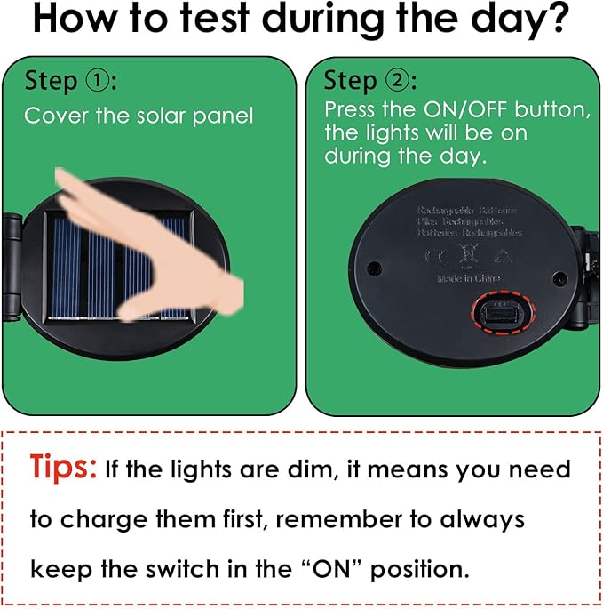 - ESAY INSTALLATION:No plugs, cords, or expensive installation is required. Just flip the switch, attach the lights to the metal sticks provided, and then stick them into the ground.