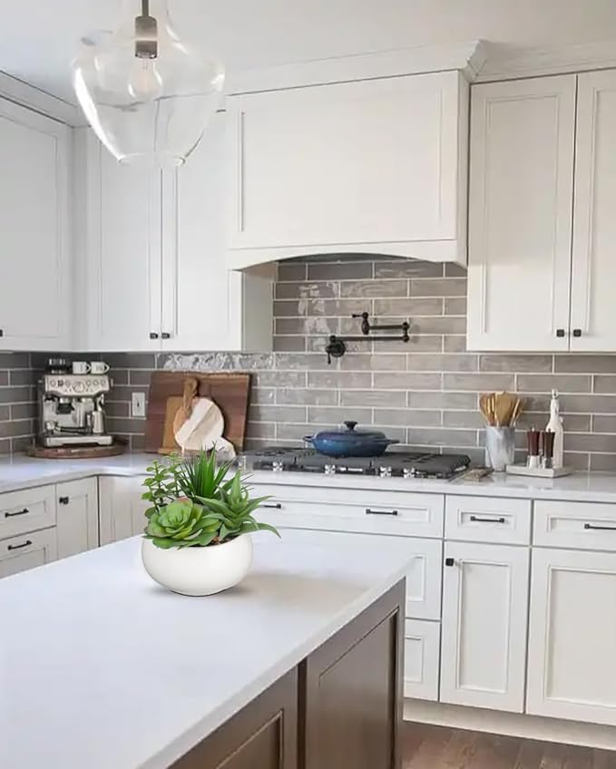 Fake Plants Artificial Succulents in Pots Faux Succulent Arrangement Potted Plant with White Ceramic Pot for Home Decor Modern Office Desk Bathroom Shelf Living Room Indoor Decoration
