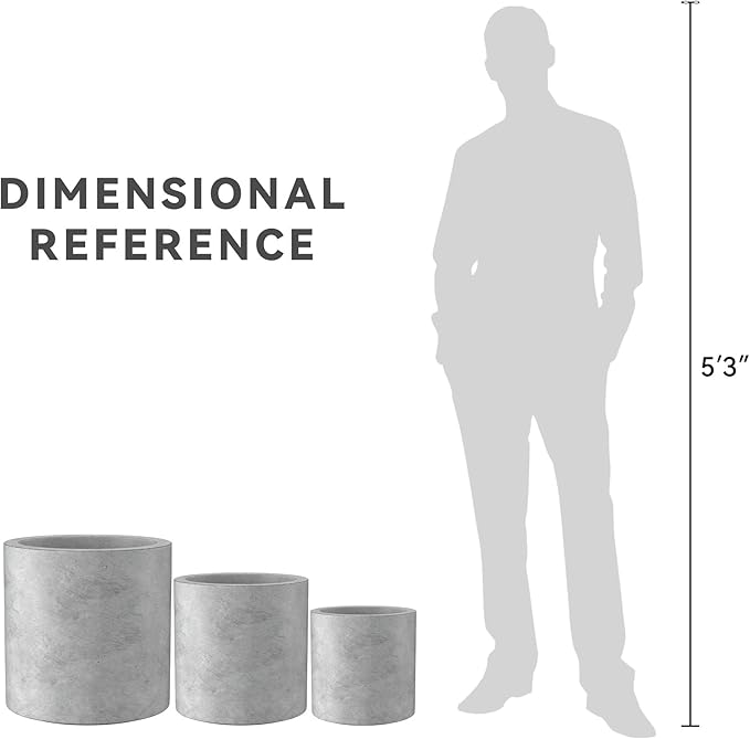 Kante 9.8",12.6",15.7" Dia Round Concrete Planter Set of 3, Modern Style Large Cylindrical Plant Pot with Drainage Hole and Rubber Plug for Indoor Outdoor Patio, Natural Concrete