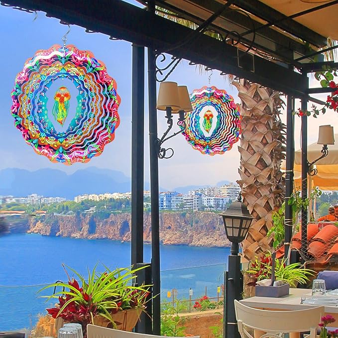 Jellyfish Wind Spinners Hanging Metal Wind Spinner for Outdoor & Indoor Decorations, Outdoor Decoration Wind Sculptures Art Decoration The for Family and friends12 inch