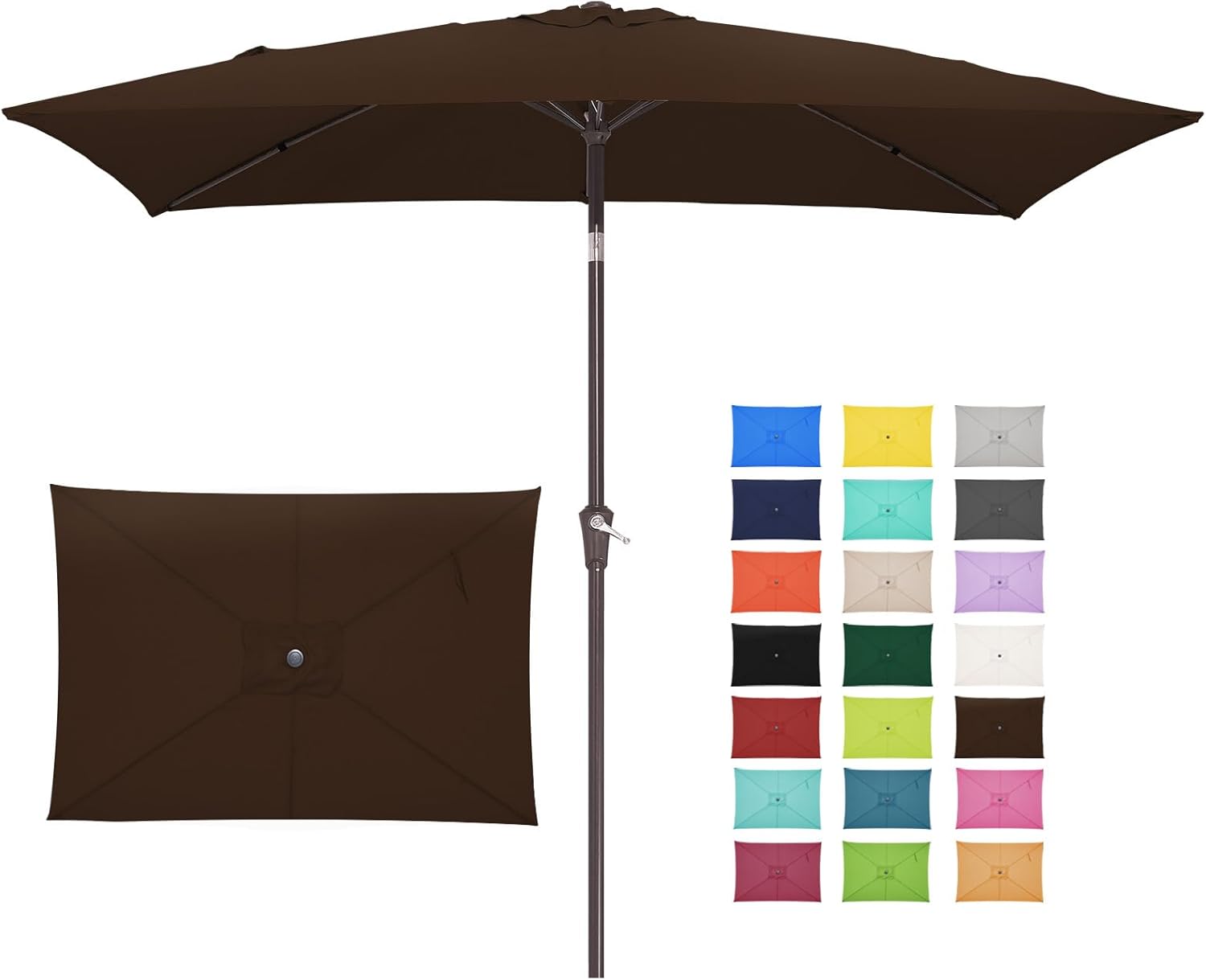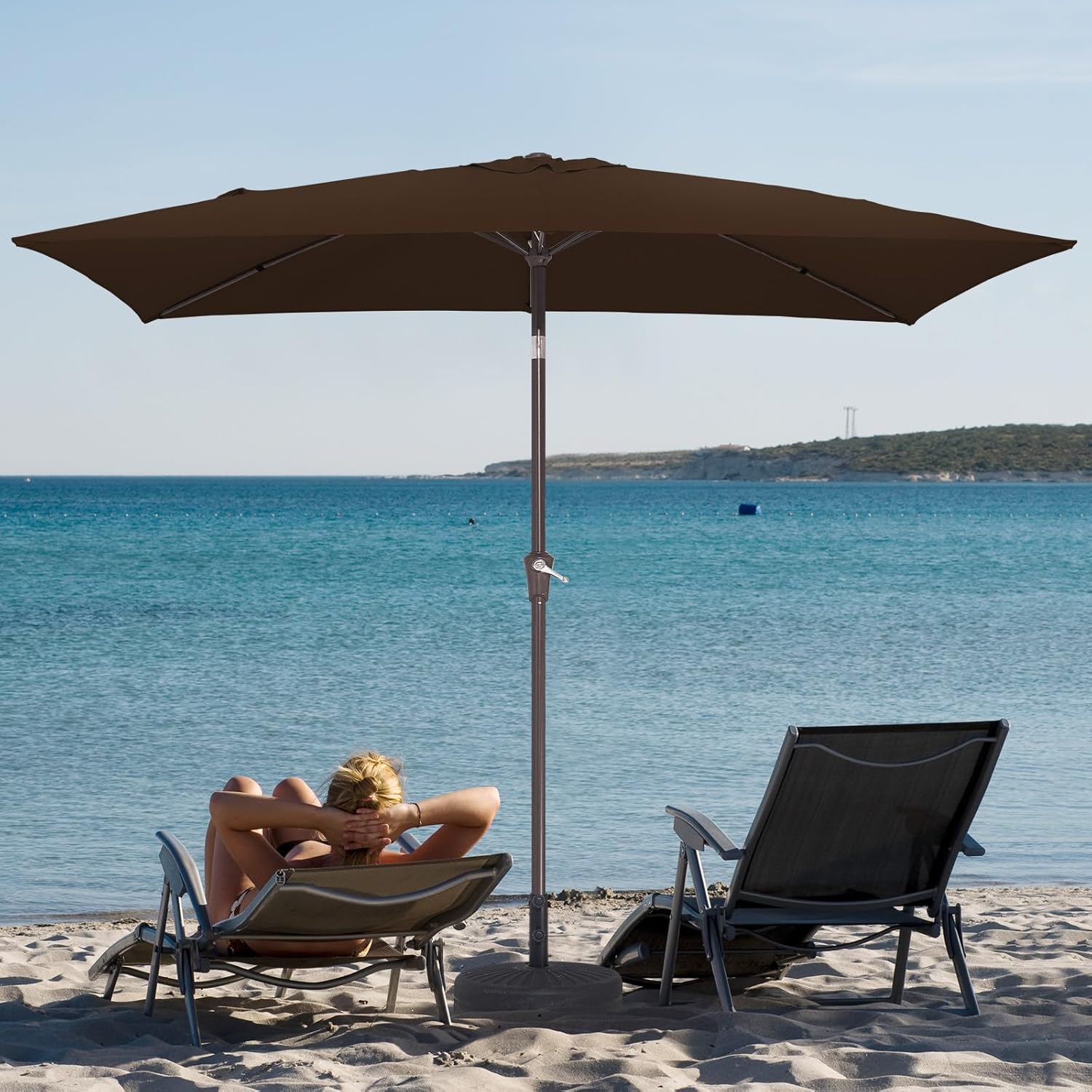 JEAREY 6.5x10 ft Rectangular Patio Umbrellas Outdoor Market Umbrella with Push Button Tilt and Crank, Rectangle Table Umbrella 6 Sturdy Ribs UV Protection for Pool Garden Backyard Deck, Brown