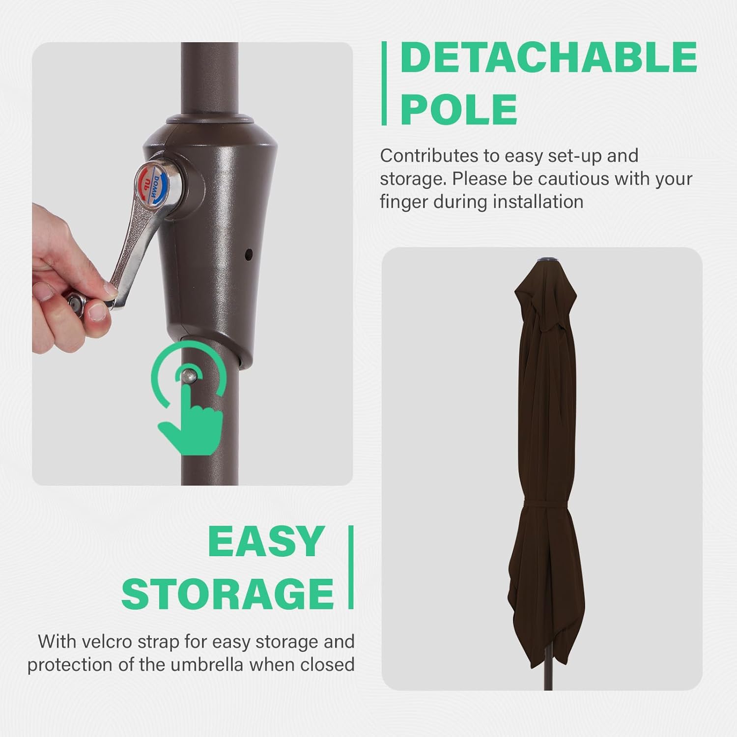 - 【MULTI-FUNCTION DESIGN】- The backyard umbrella with crank system is easy to open and close the umbrella. Press the tilt button to easily adjust the angle of the umbrella. Assembled umbrella ribs design saves storage space. Please Attention: Open the umbrella a little (not completely), so that it is easier to connect the umbrella ribs to the end seal