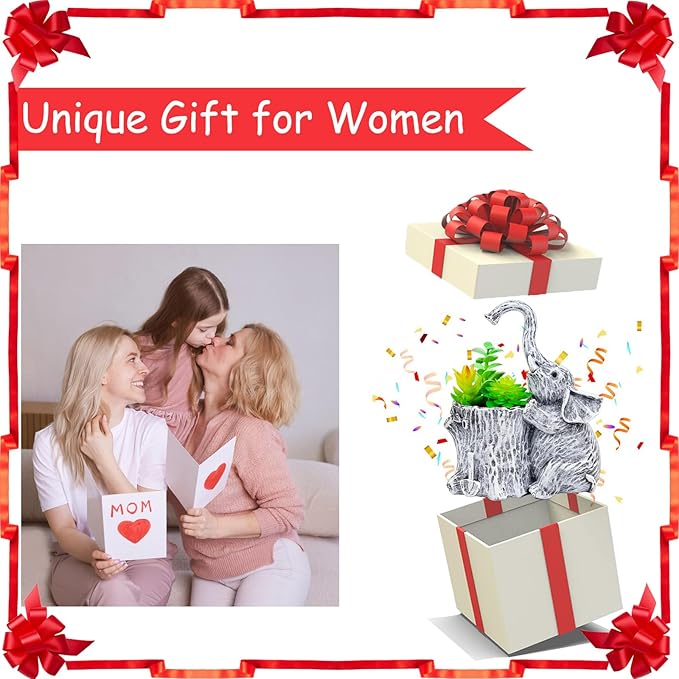 Elephant Gifts for Women Succulent Pots Indoor Elephant Planters for Plant Lovers Cute Outdoor Plant Pots Outdoor Garden Animal Decor Elephant Hug Stump Statue with Drainage Hole