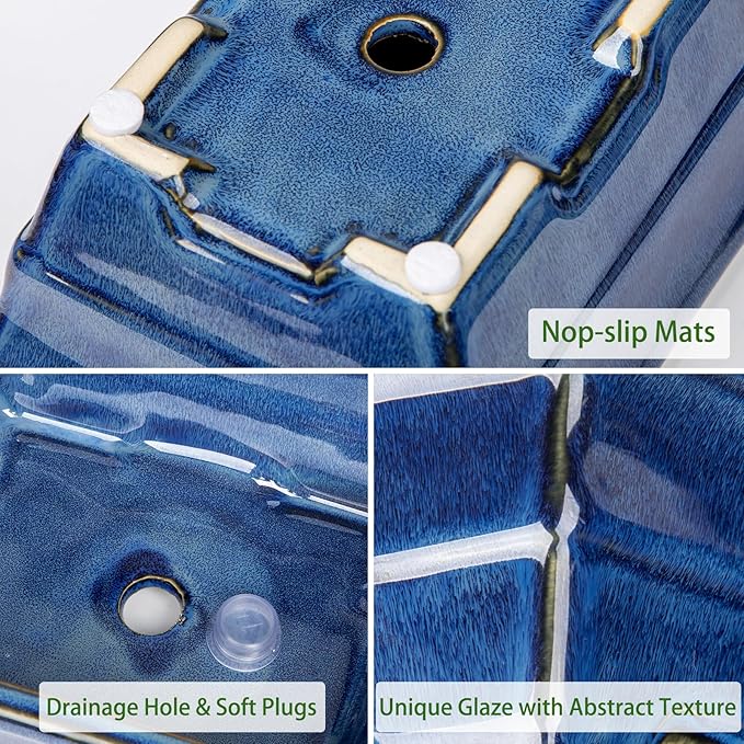 - 【Widely Application】Love the uniqueness of subtle blue glazes and somewhat mottled color form from iron within the clay body flows into and bonds with them, providing a pallet for smoother, cooler and more classic hues for multi-style decor. Excellent choice for living room, tabletop, windowsill, garden, patio, office or commercial place. Also this shallow bowl planter for indoor/outdoor plants makes a thoughtful and lasting gift to a plant lover