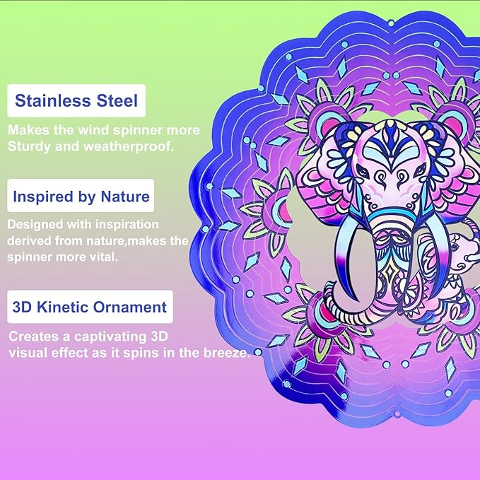 - 【3D Kinetic Wind Spinner Decoration】The dynamic wind spinner adopts a colorful appearance and is inspired by the animal image of Elephant. The unique design combines a 3D streamer effect to make it look more visual.