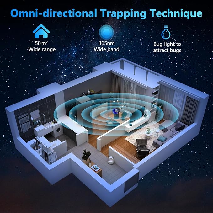 - Widely Use and Low Noise: Fruit fly traps for indoors adopts physical mosquito control, safe and low noise. Mosquito trap are commonly used in homes, kitchen, living room,restaurants, and other areas where flies can be a nuisance or a health hazard.