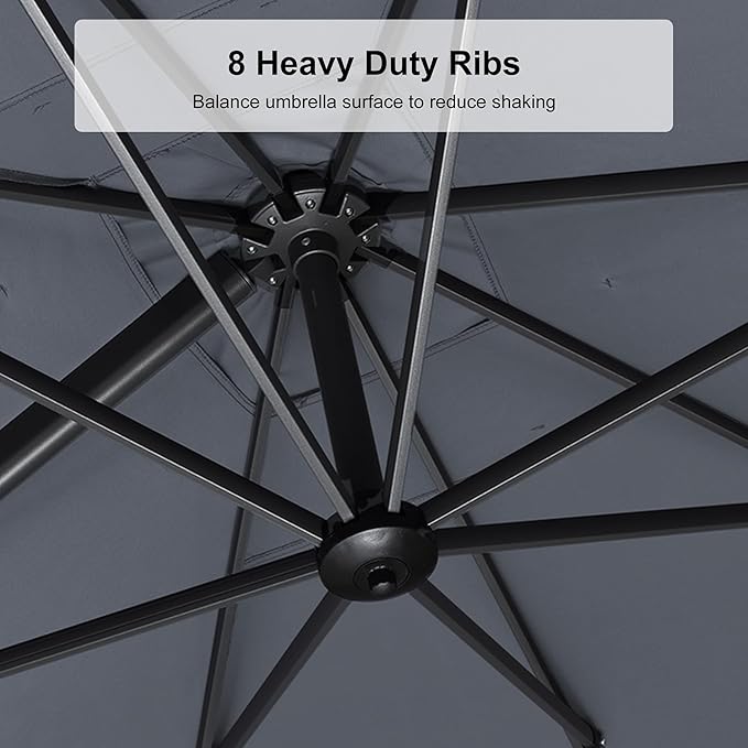- Five Height and 360° Rotation: The crank system of cantilever umbrella makes it easy to raise and lower the canopy, 5 height and angle to choose, foot pedal allows for complete 360 degree rotation