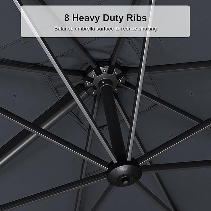 - Five Height and 360°Rotation: The crank system of cantilever umbrella makes it easy to raise and lower the canopy, 5 height and angle to choose, foot pedal allows for complete 360 degree rotation