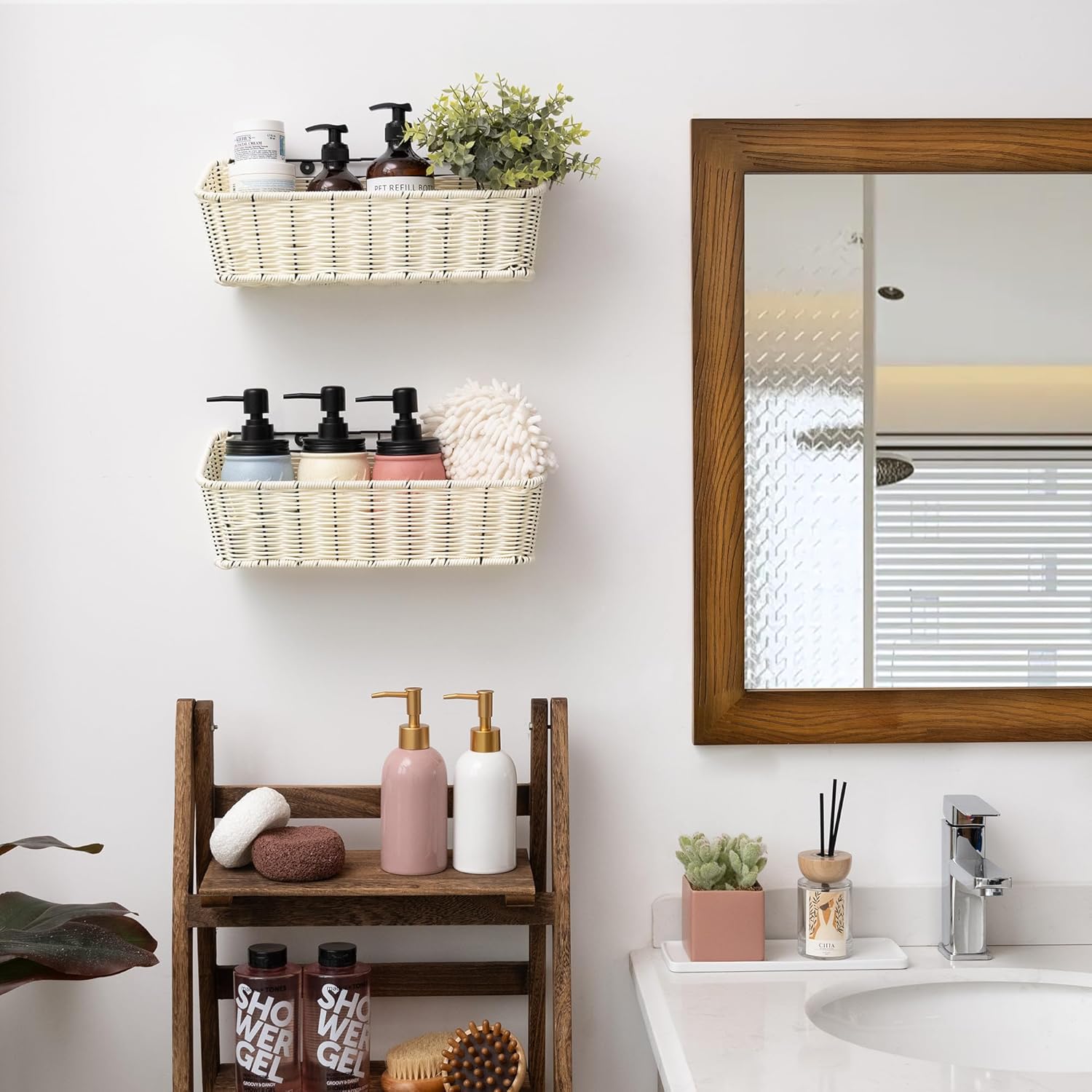 GRANNY SAYS Wicker Hanging Basket, 2 Pack Storage Baskets for Organizing, Adhesive Wall Mount Fruit Basket, Kitchen Organization Hanging Shelves, Storage Cabinet Door Organizer, Off White