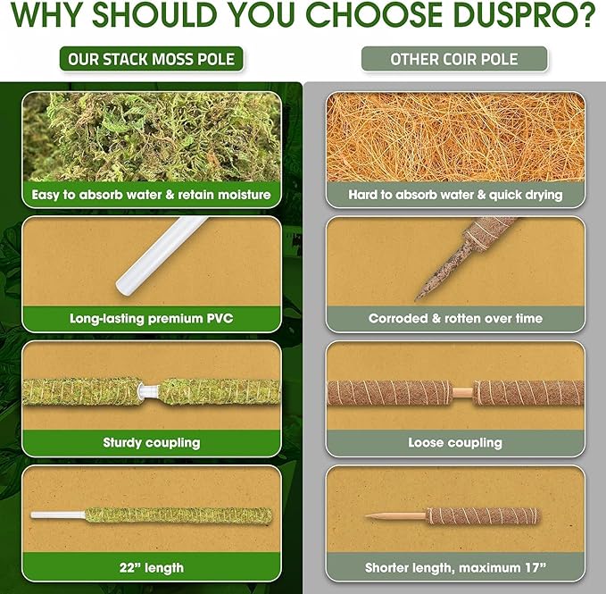 - π πππππππππ ππππππ: The lush and natural look of our moss stake blends well with your plant, adding a touch of natural elegance to any indoor space. It is suitable for all indoor or outdoor plants such as Monstera, Pothos, Philodendron, Hoya, String of turtles, Ivy, etc.