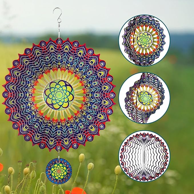 - 3D OUTDOOR WIND SPINNERS : Our wind spinners are designed with a fascinating, magical 3D vision and an attractive look that bring a mesmerizing charm to any space. The intricately designed and laser cut metal hanging wind sculptures that captivate the eye and add a touch of elegance to your surroundings.